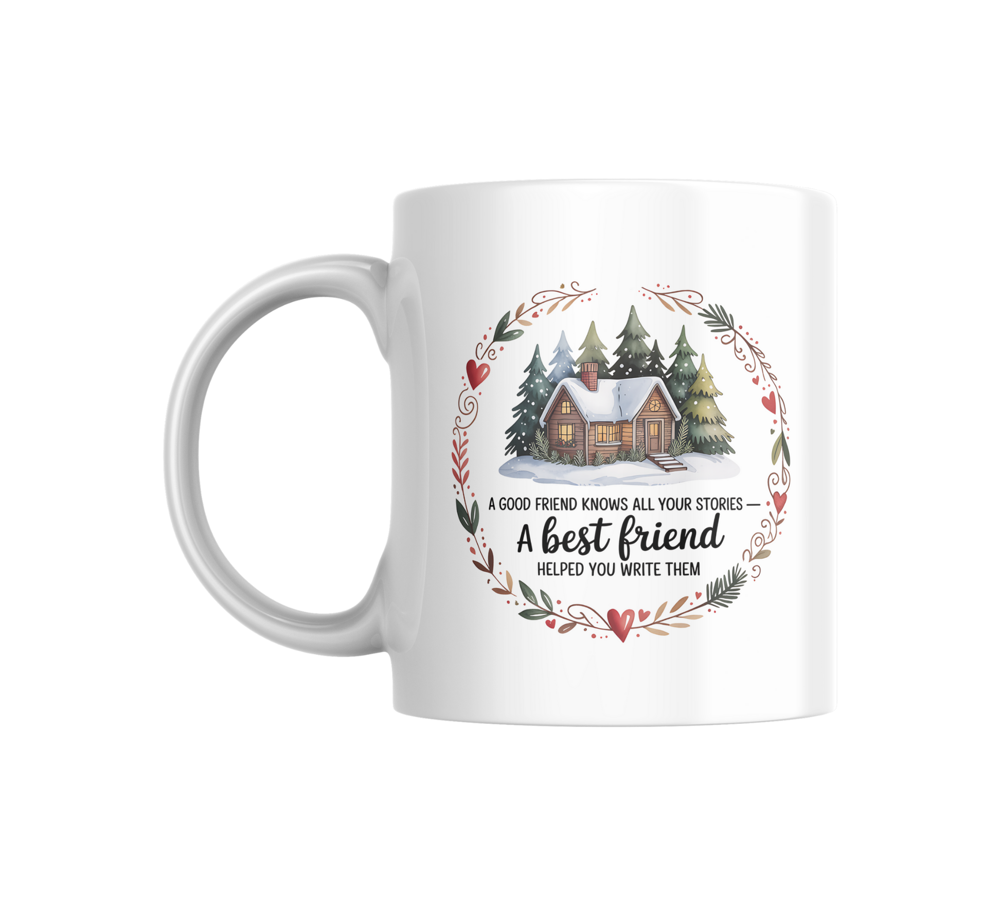 Celebrate the magic of friendship this holiday season with our Best Friend Christmas Cabin Mug. Featuring a heartwarming snowy cabin design framed by festive greenery and red accents, this mug carries a touching message: