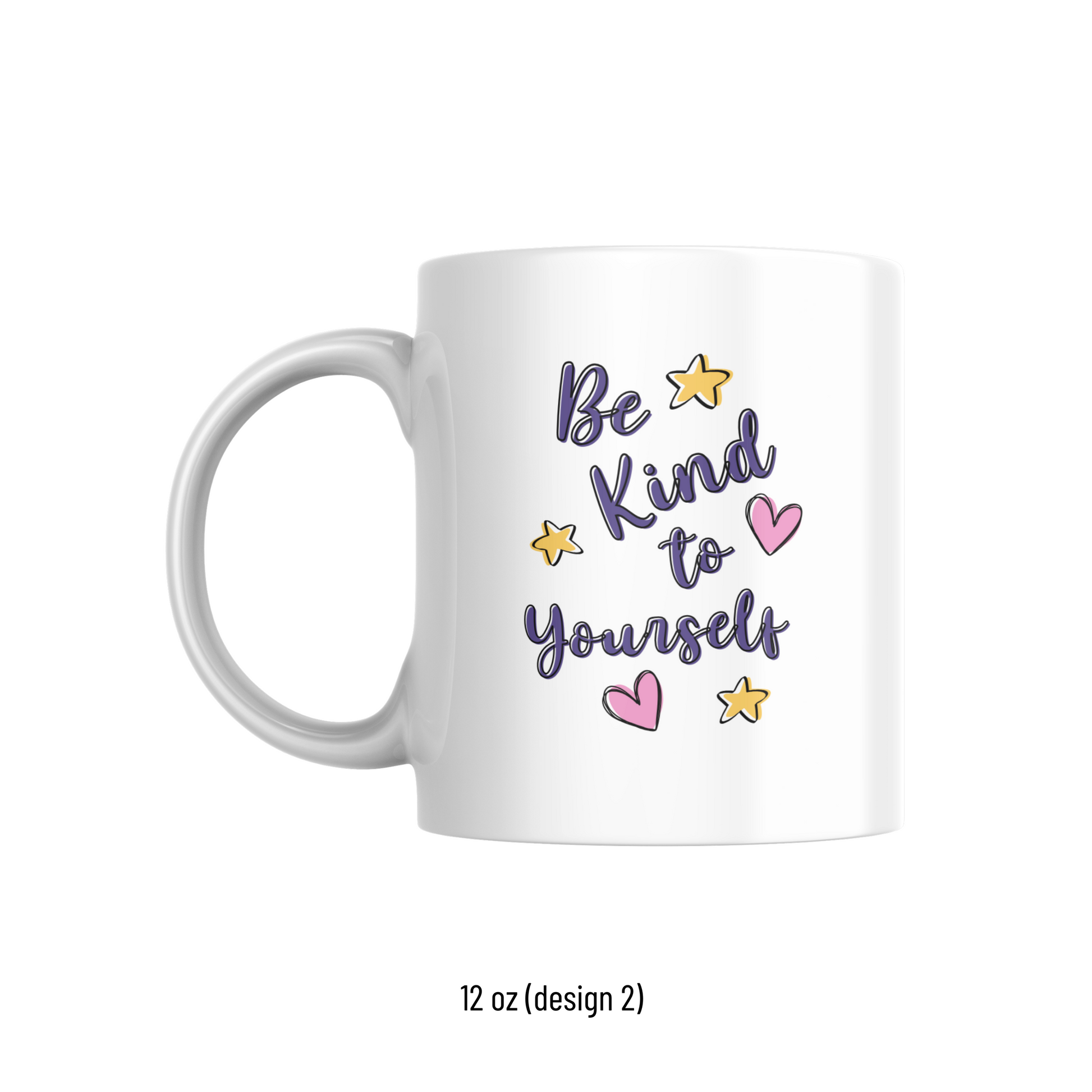 Our βBe Kind to Yourselfβ mug combines a heart-warming message with a cheerful, hand-lettered design β complete with stars β¨ and hearts πππ β to brighten your mornings and lift your spirit. Whether youβre sipping coffee, tea, or cocoa, this mug reminds you to slow down, breathe, and treat yourself with the same compassion you give to others. 2 designs are available for this product. See photos. πΏπ«