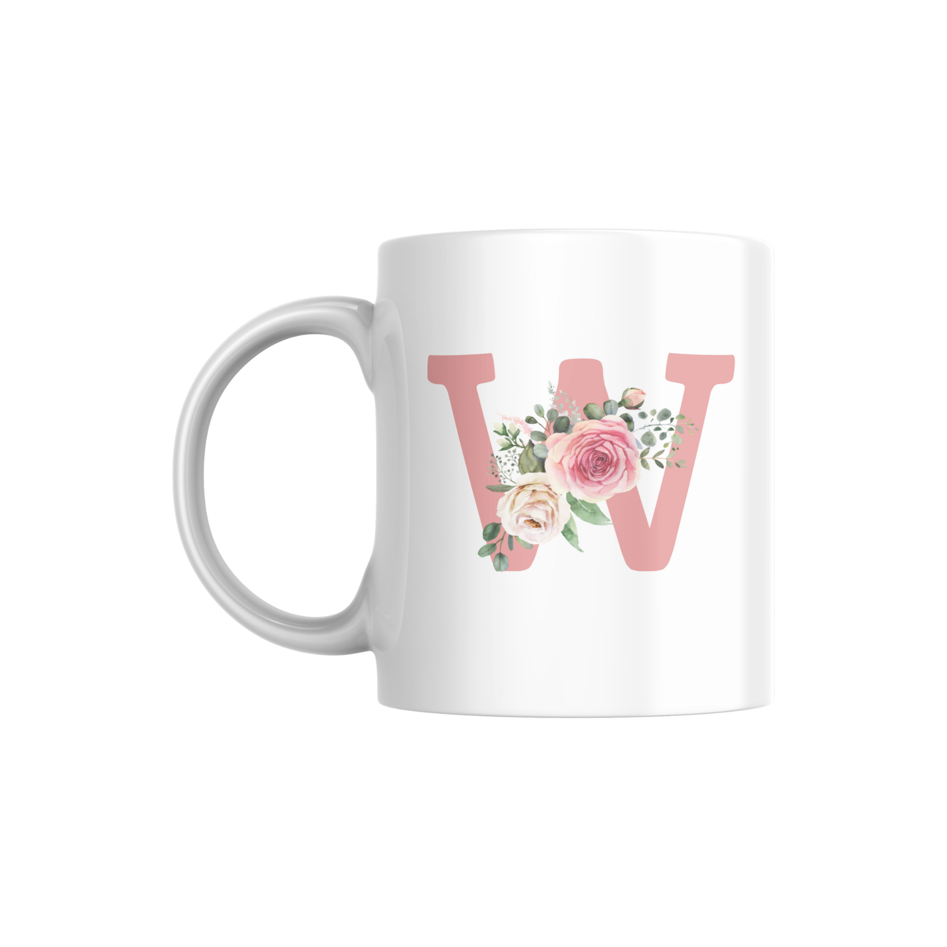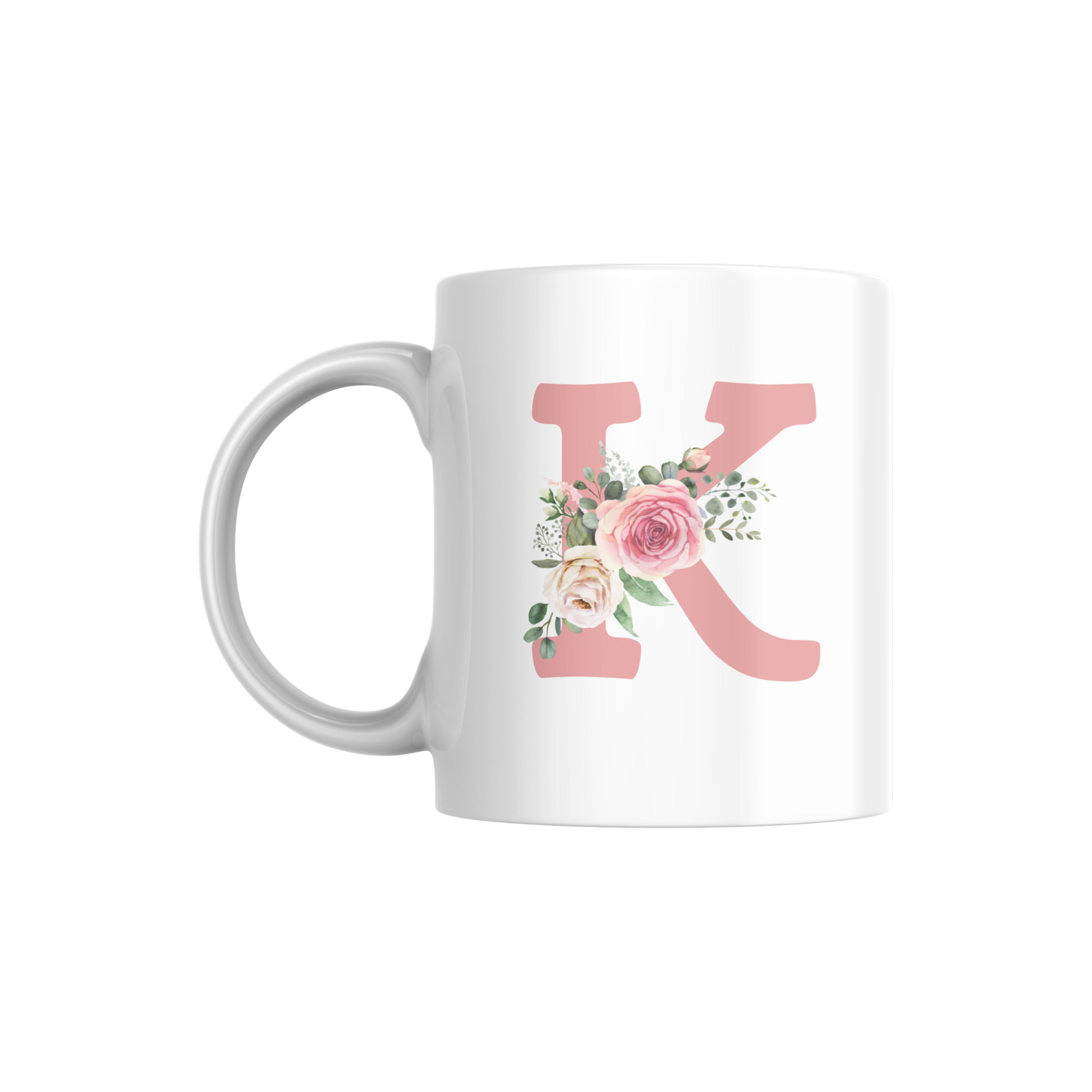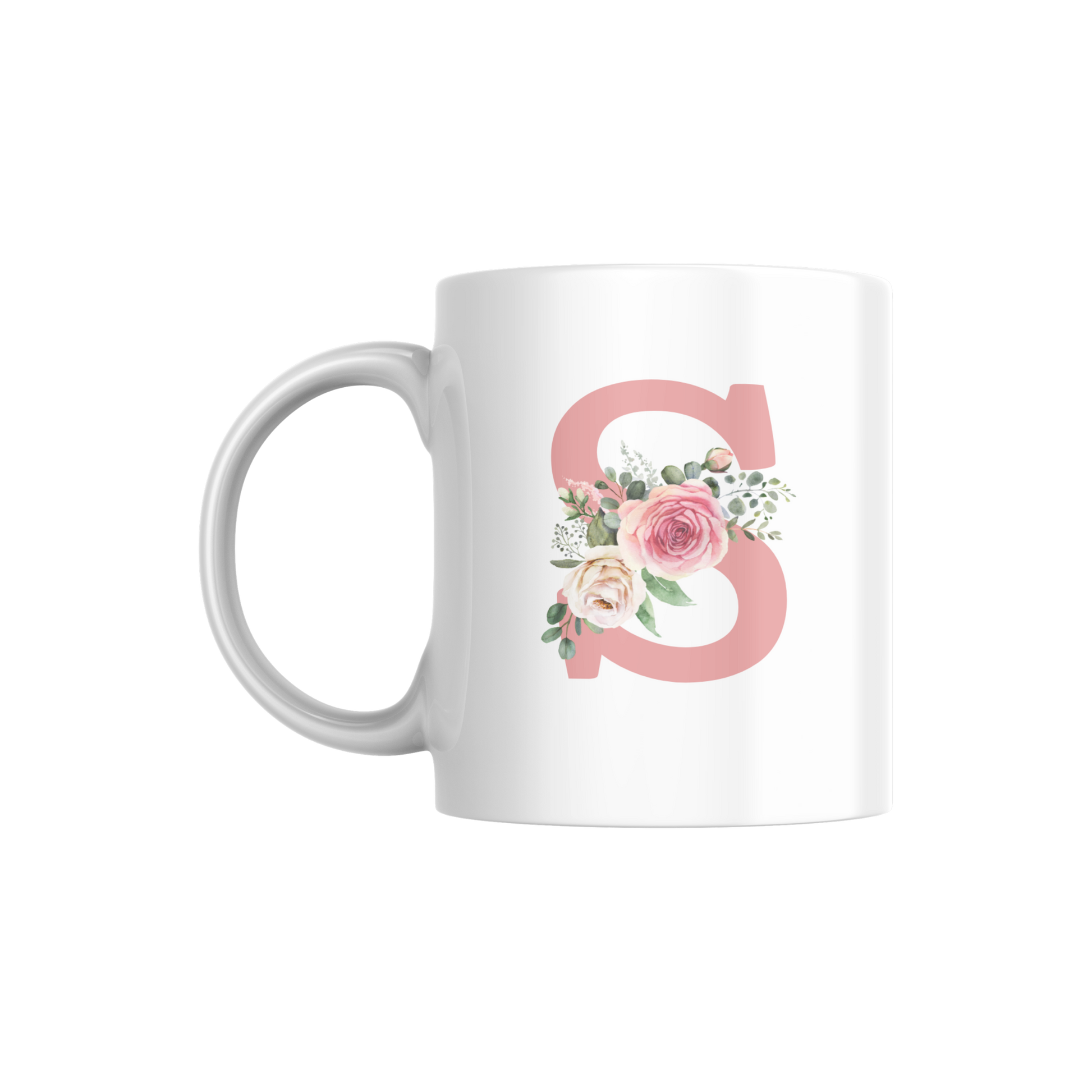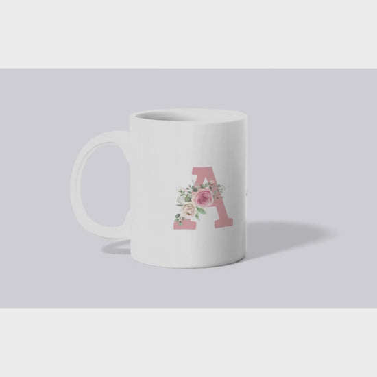 Floral Monogram Mug | Personalized Pink Rose Initial Coffee Cup