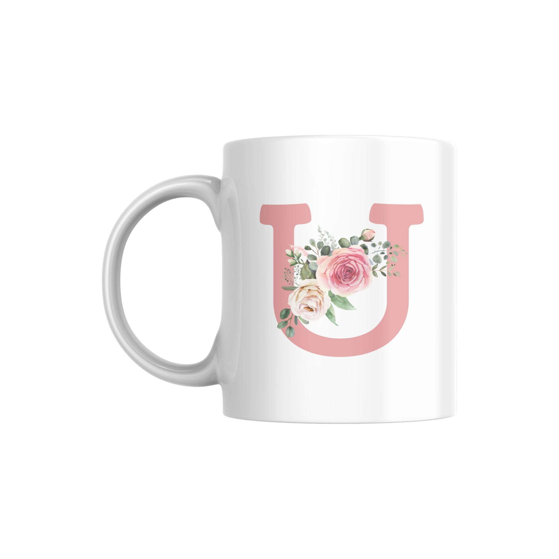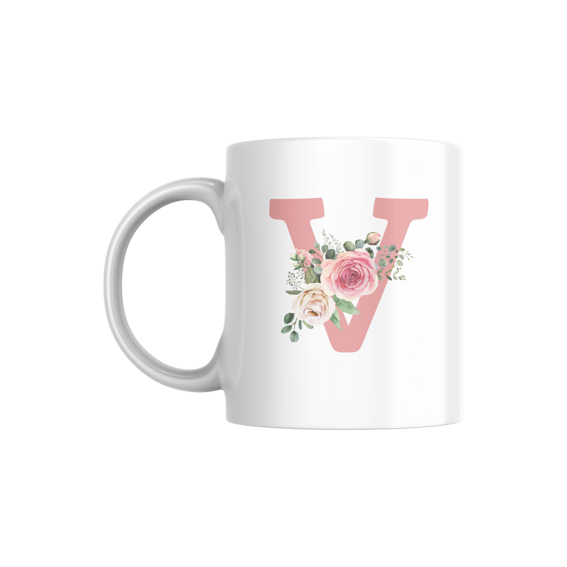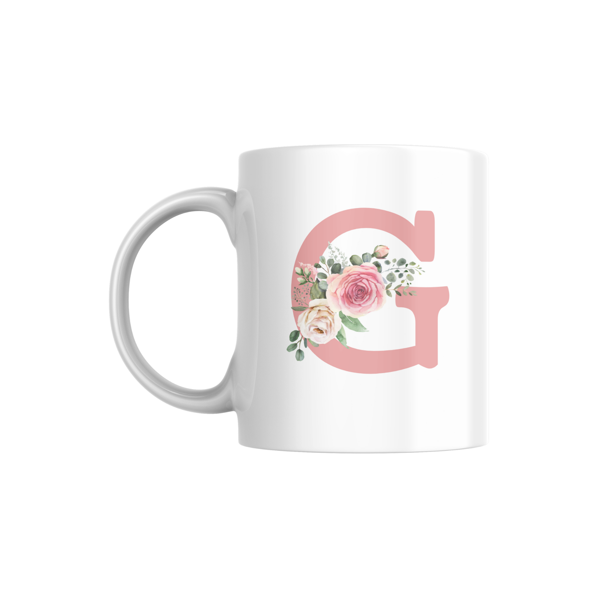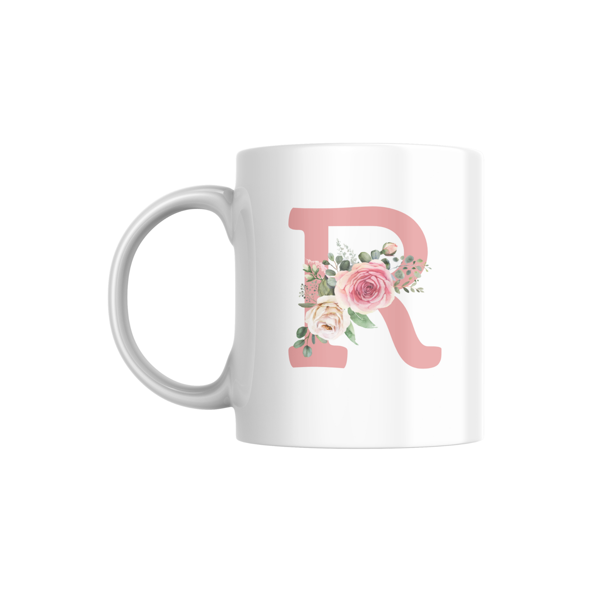 Floral Monogram Mug | Personalized Pink Rose Initial Coffee Cup